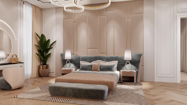 Bed and wardrobe provided