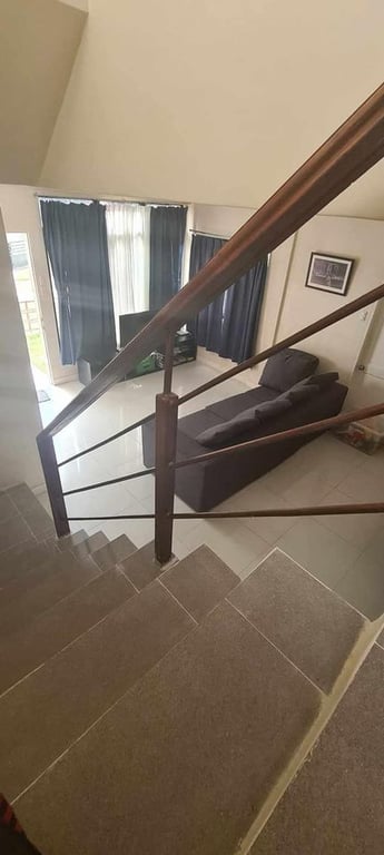 Rare and beautiful family home available now. On level one the house features large living and dining areas, dry and wet kitchen, TV den, Powder room, Storeroom and shoe closet, garden and swimming pool, Separate Helpers quarters and bathroom. On Level two is a large Master Suite with walk in closet, study/exercise room and attached bath.