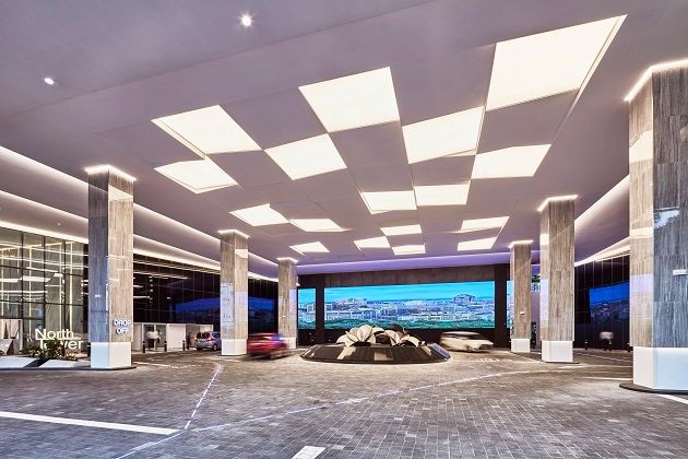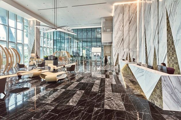 The bold façade design with full height glass windows and lush greeneries at the terrace gardens makes it a landmark.