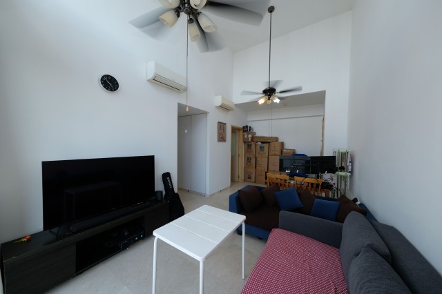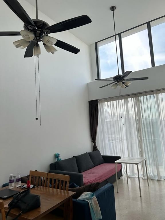 (2) A quiet loft unit with high ceiling .In living room, 2 high ceiling fans and 2 aircon .